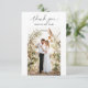 carte de remerciements photo mariage. Script moderne avec swashes, nom personnalisé et message pré-écrit, changeable au dos. Police de texte, couleurs de texte et couleurs arrière - plans peuvent être modifiées pour correspondre à n'importe quel thème mariage.