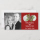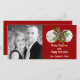 Cartes photos de Noël tropicales en rouge foncé avec texte blanc et thème plage. Deux dollars de sable et une étoile de mer aux feuilles saints décorent cette carte. L'inverse est de rouge solide.