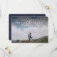 Avec une typographie simple mais élégante, cette carte de sauvegarde de date est un design classique qui présente une seule photo horizontale. Le texte blanc est placé en haut de la photo avec un filtre assombrissant pour une meilleure lisibilité. Le dos est un bleu marine tacheté, mais la couleur est modifiable en cliquant sur "personnaliser".