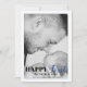 Carte de Fête des pères Blue First Fête des pères typographie. Il comprend une photo et le texte "Bonne première Fête des pères. Le dos comprend un motif du texte "Meilleur père jamais" en bleu.