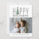 Un carte photo de fête et moderne de vacances qui lit "bonnes fêtes" et comporte une illustration moderne d'arbre de Noël.