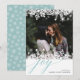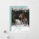 Le design élégant et moderne des cartes de vacances comprend votre photo préférée encadrée en haut et en bas par une bordure d'illustrations de flocs de neige blancs. "Joy" apparaît sous la typographie de script de calligraphie chic. Personnalisez avec votre salutation personnalisée et les noms en bas à droite. Les cartes retournent à un motif de flocon de neige assorti sur aqua glacé hivernal.
