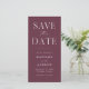 Annoncez votre date de mariage avec cette photo moderne et élégante enregistrez la carte de date. Le design comporte "Save the Date" sur le devant en serif blanc et des polices de caractères avec un arrière - plan vin/violet. Personnalisez le minimaliste enregistrez l'annonce de date en ajoutant vos noms, date et emplacement mariage. La carte inverse pour afficher votre photo fiançailles préférée. Le simple enregistrement de la date annonce est parfait pour n'importe quel thème mariage.