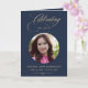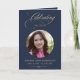 Carte Photo Elegant Blue Gold Script Funeral Program