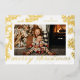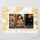 Cet élégant carte photo de vacances dispose d'une bordure dessinée à la main avec un feuillage d'hiver en or véritable en feuille et d'un script fleuri saluant "Joyeux Noël" en accédant à une seule photo personnalisable pour une sensation de vacances traditionnelle classique. Le dos ajoute un intérêt unique avec un motif de feuillage doré assorti.