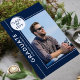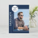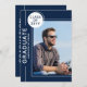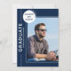 Carte Photo Graduation Party Moderne Script Bleu Blanc