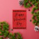 Papier brossé à la main Happy Valentines Day arrière - plan avec couleur rouge et texte et photo centrale. Ajoutez un message à l'arrière si vous le souhaitez.