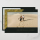 Cette carte de vœux chic présente un véritable cadre rayé en feuille d'étain sur le coin supérieur gauche mettant en valeur une seule grande photo horizontale avec un vœu de Bonne Année. Le dos offre un espace pour deux photos supplémentaires et un message plus long. Le fond de couleur vert forêt foncé se démarque de la foule et crée un look chic et sophistiqué.
