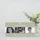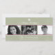 Mettez en valeur votre famille avec trois photos sur un joli fond saisonnier de flocons de neige accentué par des règles rouges. Votre message de vacances personnalisé se démarque en blanc sur le fond vert sauge surmonté d'un seul flocon de neige blanc. Disponible en couleurs alternatives avec des produits assortis.