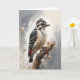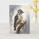 Pic vert nain perché sur une branche d'arbre. Carte de vœux vierge pour anniversaire, anniversaire de mariage, nouveau bébé, merci, condoléances, etc.
