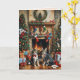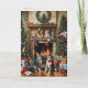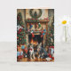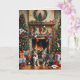 Cette carte de Noël présente deux chats devant une cheminée dans un salon décoré de façon festive. Aspect vintage. Envoyez vos vœux de Noël à vos amis et à votre famille. Texte et couleur personnalisables (à l'intérieur).