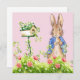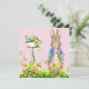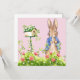 Pierre le Lapin dans son jardin vérifiant sa maison d'oiseau.