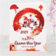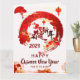 Le design présente un coup de pinceau circulaire rouge parsemé de caractères calligraphiques chinois "福" et d'éléments décoratifs traditionnels chinois tels que des fleurs, des éventails et des lanternes, entourant une image formée de la calligraphie chinoise "恭賀新年", d'un lapin en découpage de papier et du numéro "2023". L'arrière-plan est surimposé d'un motif de nuages ombrés. Le rouge vif, symbole de bonne fortune et de joie, est la couleur la plus populaire pour la célébration du Nouvel An lunaire. L'ensemble du design exprime de bons vœux pour la santé, l'amour, la richesse, la chance et le bonheur. Les vœux/messages au recto et au verso sont personnalisables par vos soins.