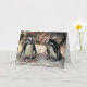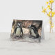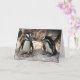 Cette carte de note comporte deux pingouins africains adorables se tenant sur un rebord rocheux. Ils sont des oiseaux aquatiques et incapables de voler dont les ailes ont les nageoires devenues. Chacun a une rayure noire et des taches noires sur le coffre. Le motif des taches est unique pour chaque pingouin, juste comme les empreintes digitales humaines. Elles ont les glandes roses au-dessus de leurs yeux et les pieds roses et noirs.