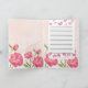 A beautiful pink floral folded greeting card with delicate flowers and butterflies.