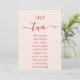 Carte Pink & Red Script Simple Modern Seating Chart Card