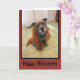 Sur cette carte se trouve notre adorable Pitbull de Nez Bleu appelé Sarge. Tout habillé de sa couverture colorée enroulée autour de ses épaules comme la cape d'un super-héros, Sarge dit, "Je suis prêt à aller Trick ou Treating! Où est MON sac cadeau ?"