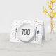 Plaque blanche et argenterie sur le blanc avec des étoiles de confettis colorées pour le 100e anniversaire. Tout le texte peut être modifié.