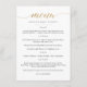 Panneau de menu de mariage simple, classique et élégant. Un design élégant en or, noir et blanc ou dans la couleur de fond de votre choix. Cliquez simplement sur le lien "personnaliser davantage", affiché sous la zone de personnalisation du texte à droite, et choisissez la couleur de fond personnalisée. Ce modèle d'affiche permet de créer rapidement et facilement des éléments superbes pour votre décoration de mariage. Les panneaux peuvent être réduits, il existe de nombreuses tailles parmi lesquelles choisir, ainsi que des options de cadrage et de mat personnalisés.
