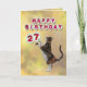 Un mignon chat sur ses pattes postérieures jouant avec un message d'anniversaire épelé dans des ballons. Une belle carte pour les amateurs de chat.
