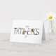 Cette carte pliable est imprimée avec un dessin de fête des pères dessiné à la main avec un assortiment d'outils disposés pour former le message "Joyeuse fête des pères".