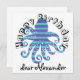poulpe horizontale rayée bleu cool avec texte : Joyeux anniversaire et un nom modèle. Cliquez sur personnaliser et changez le nom en votre nom.