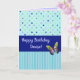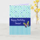 Cette carte modifiable présente des pois sur un fond aqua en haut et des rayures bleues en bas avec une bande de rayures près du centre. Il y a des vœux d'anniversaire et un papillon. La bande de rayures peut être changée en n'importe quelle couleur, ainsi que la police sur le devant et à l'intérieur. Le texte sur le devant et à l'intérieur est également modifiable, il est donc possible de modifier les messages et le nom pour le personnaliser ! Cela peut être utilisé pour presque n'importe quel usage : anniversaires, cartes de remerciement, anniversaires de mariage, remises de diplômes, retraites, etc.