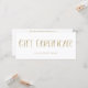 Ce certificat cadeau élégant et moderne est doté d'un arrière - plan blanc, avec une typographie à la main fantaisie en or blanc.