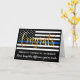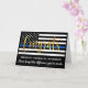 Carte de félicitations pour la retraite de la police de la Ligne Bleue Mince. Drapeau américain dans les couleurs de la police, design moderne noir bleu avec élégants "Félicats" en écriture or. Citation "N'oubliez jamais la différence que vous avez faite". Personnalisé depuis avec votre nom d'agent et customisez l'intérieur avec votre message personnel. Consultez notre collection pour obtenir des invitations à la retraite, des cadeaux de retraite de la police, des faveurs de parti et des fournitures. DROIT D'AUTEUR © 2020 Judy Burrows, Black Dog Art - Tous droits réservés. Carte d'or de la retraite de la police Script Blue Line
