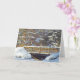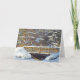 Carte de voeux numériquement photo manipulée de pont en bois dans la neige avec des arbres à feuillage persistant derrière. À l'intérieur.