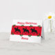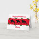 Illustration d'une petite fille trottant sur un poney. Trois jolies silhouettes noires traversent la page sur un arrière - plan vert et blanc entouré de saint. Design frappant. Personnalisez facilement cette jolie carte de Noël en éditant le texte modèle. Merci d'avoir vu mes modèles de chevaux.