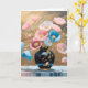 Fleurs de pavot bleues et roses dans un vase noir pour un anniversaire. Tout le texte peut être modifié.