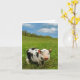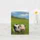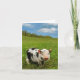 La photo du porcelet mignon sur le pré sur la carte de voeux avec le logo "apprécient votre ressort" à l'intérieur.