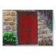 Un aquarelle représentant une porte rouge d'une maison de village grecque peinte par Georgia Pistolis.