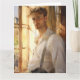 Cette belle carte d'art présente un captivant portrait aquarelle d'un jeune homme debout près d'une fenêtre, ses cheveux mouchetés, portant une chemise blanche et des bracelets, et tournant son regard chaud vers le spectateur. La douce aquarelle et la chaleur de la pièce en font un endroit parfait pour envoyer une note attentionnée, un accueil charmant, ou pour quiconque apprécie les portraits classiques et accessibles.