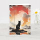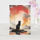 Portrait de chat noir à l'aquarelle avec des cieux rouges, jaunes, gris. Carte de vœux vierge pour anniversaire, anniversaire de mariage, nouveau bébé, merci, condoléances, etc.