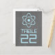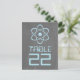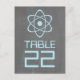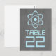 Carte postale avec un simple symbole atomique en bleu clair sur un tableau de bord à l'allure arrière - plan. Cette carte de table geek et amusante est parfaite pour le couple passionné de science ! Facile à customiser, il suffit d'ajouter le ou les numéros de table appropriés dans l'espace prévu. Cliquez sur "Customiser" pour trouver d'autres options de personnalisation.