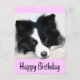 Aww...Qui peut résister au visage mignon d'un chien chiot de Border Collie ? Cette carte postale amusante Happy Birthday salue le portrait d'un chien endormi noir et blanc bordé d'une bordure rose pâle avec une bordure rose pâle soulignant un accueil heureux Birthday. br> Anniversaire Les cartes postales sont une alternative économique aux cartes de voeux lorsque vous voulez envoyer une note d'anniversaire rapide. D'autres cartes d'anniversaire canines que vous pouvez aimer... com