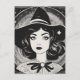 Cette illustration en noir et blanc de style vintage captivante présente une sorcière mystique dans un style rétro classique. Avec son regard perçant, ses cheveux flottants et son casquette pointu signature orné d'une étoile, cette sorcière incarne un mélange de charme d'antan et d'élégance gothique. Le décor céleste, avec une lune tourbillonnante et des étoiles scintillantes, ajoute une atmosphère enchanteresse à ce portrait magique. Parfait pour les amateurs de sorcellerie, d'esthétique gothique et d'art occulte vintage, ce design exhale les vibes sorcières avec un charme intemporel. Idéal pour les vêtements, la décoration de la maison et les accessoires, cette oeuvre apporte une touche de magie à tout décor.