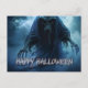 Un fantôme noir sombre et flottant à la forme éthérée, entouré de nuages denses de brume, survolant dangereusement le sol dans un paysage sombre et désagréable à l'atmosphère sinistre. Joyeux Halloween