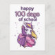 Mignonne licorne portant un sac à dos et tenant un gros stylo avec la citation "Joyeux 100 jours d'école". Joyeux 100ème jour d'école ou heureux 100ème jour de jardin d'enfants.