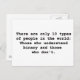 Il n'y a que 10 types de personnes dans le monde : ceux qui comprennent le binaire et ceux qui ne le comprennent pas.
