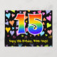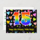 Carte Postale 15e anniversaire : motif coeurs amusants, arc-en-c