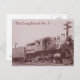 Photo à l'ancienne, de 1901, d'une Locomotive à vapeur Baldwin avec l'ingénieur assis devant. Réimprimé sur cette carte postale.
