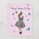 1950 Femme Vintage en robe noire tenant un Chien entouré de papillons voeux de Noël