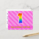 Le recto de cette carte de vœux d'anniversaire joyeuse, amusante et dynamique présente un grand chiffre "1" avec un motif dégradé de spectre arc-en-ciel, ainsi que le message "Joyeux 1er anniversaire" et un nom de destinataire modifiable. Le recto présente également un motif rayé rose clair et rose foncé contenant des formes de cœur. Le verso comporte un message de vœux d'anniversaire personnalisé, ou pourrait éventuellement être effacé et laissé vide si un message doit être écrit à la main à la place. Une carte de vœux d'anniversaire personnalisée comme celle-ci pourrait être un moyen amusant de souligner le premier anniversaire de quelqu'un. Des cartes postales comme celle-ci pourraient également être utilisées pour inviter des invités à une fête ou une célébration d'anniversaire organisée pour quelqu'un qui a 1 an.
