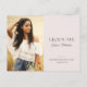 Cette carte postale minimaliste de graduation est dotée d'une typographie simple et d'une palette de couleurs rose et noir. Sur le devant, une photo verticale est affichée sur le côté gauche. À droite, "Graduate" est écrit dans la typographie moderne de tous les casquette, avec le nom de la grade écrit en calligraphie ci-dessous. En bas, ajoutez l'école du diplômé et l'année de fin d'études. La typographie est noire contre un arrière - plan rose roux. Au verso de la carte postale principale, vous pouvez ajouter un message aux destinataires et/ou à l'information sur la fête de remise de diplômes.