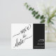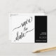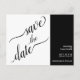 Ces cartes postales de mariage sauvegardent la date avec un style unique et élégant 2 volet avec une calligraphie de script élégante sur la gauche et des détails de texte simple sur la droite. Les couleurs noir et blanc rendent le design à la fois simple et audacieux.