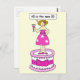 Dessin d'une dame rose, debout sur un grand gâteau rose et blanc tenant un cocktail et disant "45 est le nouveau 35".