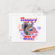 Célébrez le 4 juillet avec un mignon écureuil tenant un drapeau et les mots rouges, blancs et bleus qui disent Happy 4th!.